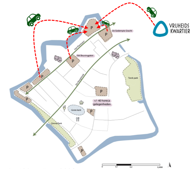 Er is op dit moment geen locatie beschikbaar voor een parkeervoorziening buiten de Stadsgracht. Daarom onderzoeken we de haalbaarheid van een parkeergarage met bewaakte fietsenstalling op de Gevangentoren. Zo ontstaat ruimte om de genoemde parkeerplaatsen opnieuw in te richten.